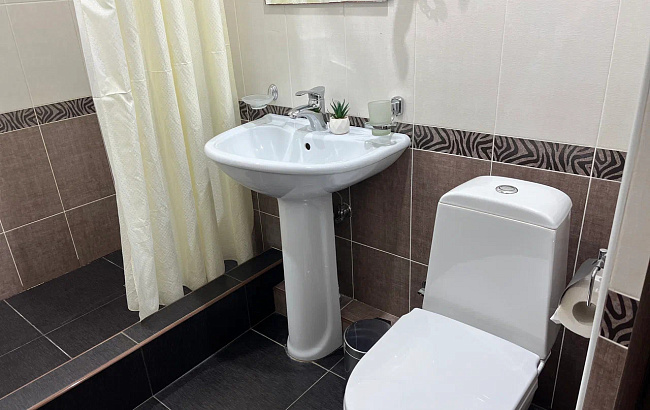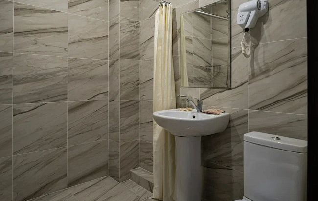 В номере: двуспальная и односпальная кровати, телевизор, кондиционер, мини-холодильник, санузел с душем, фен, балкон.